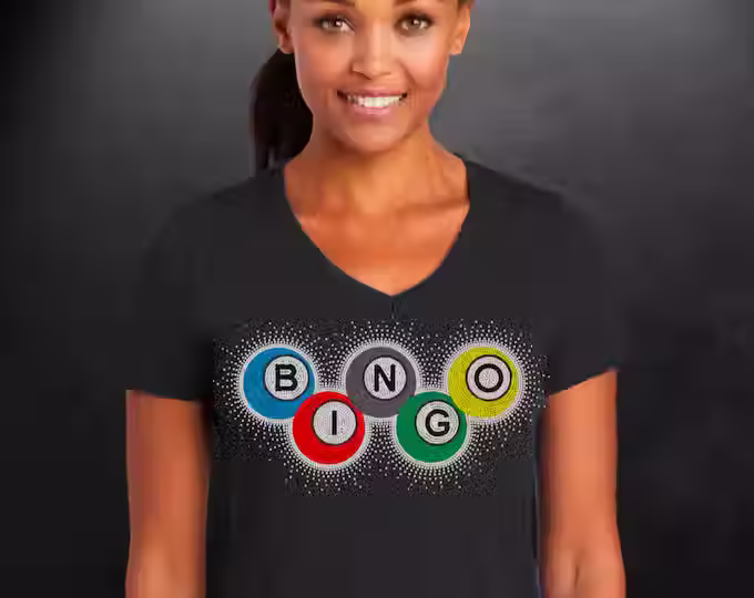 Rhinestone I ❤️ Bingo Purple T-Shirts